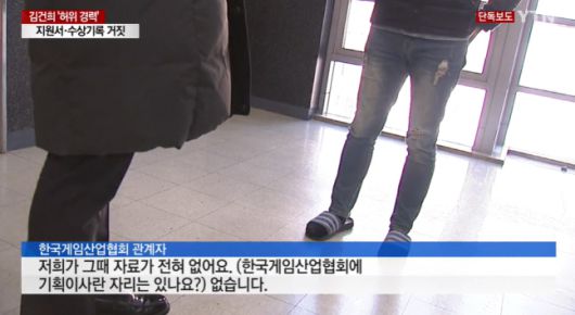그동안 자신을 둘러싼 갖은 논란에도 침묵해온 김씨는 YTN과 단독 인터뷰에서 설립 전 ‘한국게임산업협회 기획이사’로 적힌 재직증명서에 대해 “믿거나 말거나 기억이 나지 않는다. 정확한 경위를 확인하고 있다”고 말했다.