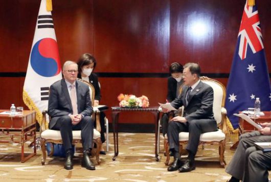[아시아경제 이지은 기자] 호주를 국빈 방문 중인 문재인 대통령은 14일 시드니에서 앤소니 노만 알바니즈 노동당 대표를 접견했다.