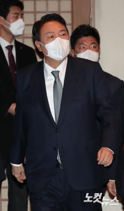 관훈클럽 초청 토론회 참석하는 윤석열 대선후보