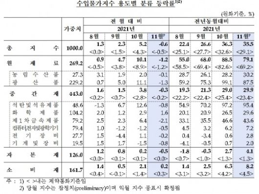 하지만 전년 동월 대비해서 수입물가는 35.5% 상승했다. 9개월 연속 상승이다.