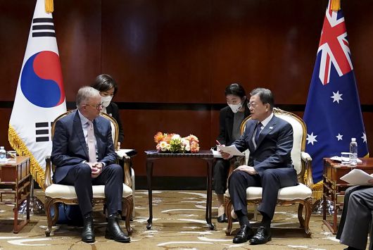 문 대통령은 이날 오전 시드니의 한 호텔에서 알바니즈 대표를 만나 ",사회적 약자의 편에 선 노동당이 호주의 포용적이고 지속가능한 회복에 큰 역할을 할 것"이라며 이같이 밝혔다. 캔버라 일정을 마무리한 문 대통령은 이날 오전 시드니에 도착했다. 문 대통령은 ”아시아 국가와의 협력에 크게 기여해 온 노동당이 양국 공동 번영을 위해서도 큰 역할을 해 주길 기대한다“고 말했다.