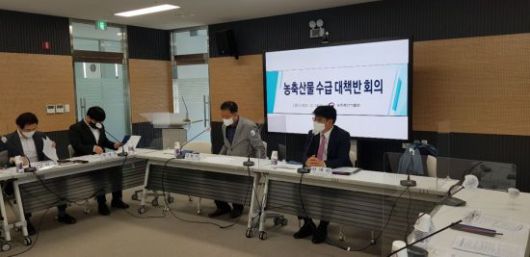 권재한(오른쪽 첫번째) 농림축산식품부 식품산업정책실장 직무대리가 14일 농업관측센터 오송 사무실에서 설 성수품 수급안정대책반 킥오프 회의에서 발언하는 모습.(사진제공=농식품부) |