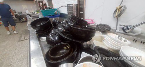 지난 7월 춘천 단수에 수북이 쌓인 그릇 |