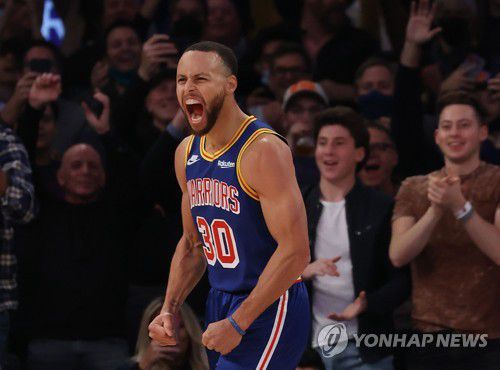 커리는 15일(한국시간) 미국 뉴욕의 매디슨 스퀘어 가든에서 열린 뉴욕 닉스와의 2021-2022 NBA 정규리그 원정 경기 1쿼터에 3점 슛 2개를 넣으며 개인 통산 2천974번째 3점 슛을 기록했다.