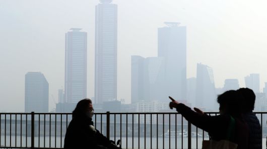 미세먼지가 '나쁨'을 보인 15일 오전 서울 여의도 일대가 뿌옇게 보인다. 뉴스1 |