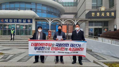 (안성=연합뉴스) 최해민 기자 = 경기 안성시의회 야당 시의원들은 16일 "더불어민주당은 내년 안성지역 국회의원 재선거에 후보 공천을 포기하라"고 요구했다.