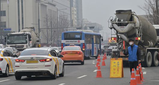 16일 수도권 지역에 미세먼지 비상저감조치가 시행된 가운데 서울 중구 세종대로에서 서울시 미세먼지 특별단속반이 운행차량 배출가스 단속을 하고 있다. 하상윤 기자 ⓒ 세상을 보는 눈, 세계일보