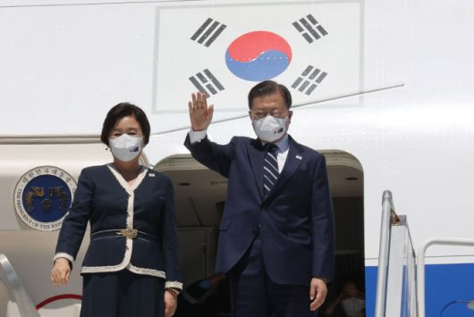 3박4일간 호주 국빈 방문을 마친 문재인 대통령 내외가 지난 15일 시드니 킹스포드 스미스 공항에서 공군 1호기에 올라 인사하고 있다. (사진=연합뉴스) |