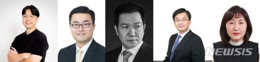 [서울=뉴시스]현대자동차그룹이 17일 임원 203명을 신규 선임하는 임원 인사를 단행했다. 왼쪽부터 추교웅 현대차 인포테인먼트개발센터장·전자개발센터장 부사장, 김흥수 현대차 미래성장기획실장·EV사업부장 부사장, 이상엽 현대차 현대디자인센터장 부사장, 임태원 현대차 기초선행연구소장·수소연료전지사업부장 부사장, 진은숙 현대차 ICT혁신본부장 부사장. (사진=현대차그룹 제공) |