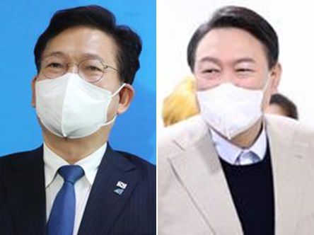 송영길 더불어민주당 대표(왼쪽), 윤석열 국민의힘 대선후보./국회사진기자단 |