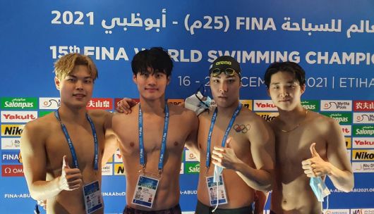 19일 한국 수영 대표팀은 아랍에미리트(UAE) 아부다비의 에티하드 아레나에서 열린 2021 국제수영연맹(FINA) 쇼트코스 세계수영선수권대회 4일 차 남자 계영 200m 예선에서 황선우-김우민(강원도청)-원영준(대전광역시체육회)-이호준(대구광역시청) 순서로 팀을 구성해 1분28초56으로 한국 신기록을 세웠다.
