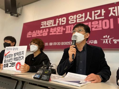 참여연대 민생희망본부는 20일 기자회견을 열고 "정부가 말하는 업체당 100만원 방역지원금으로는 부족하다"며 "손실보상 대상에 사적인원 제한 조치에 따른 피를 포함하고 임대료 분담 대책을 내놔야 한다"고 주장했다.