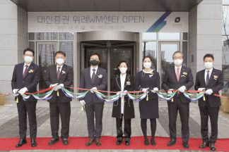 이어룡(왼쪽에서 네번째) 대신금융그룹 회장과 대신증권 임직원이 서울 송파구 위례WM센터 개점행사에 참석하고 있다. [대신증권 제공] |