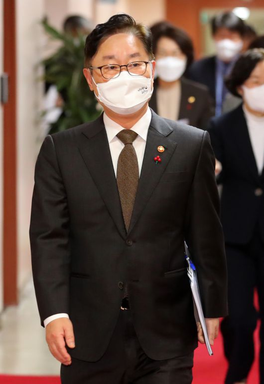 박 장관은 21일 국무회의가 끝난 뒤 정부과천청사 법무부로 이동하면서 기자들의 질문에 이같이 답했다. 법무부 교정당국이 형집행정지 직권신청을 할 가능성이 있는지에 대해서는 “들어가서 바로 물어보겠다”고 했다.