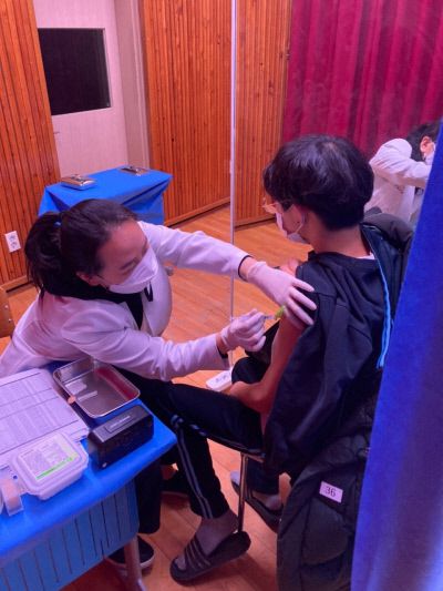 지난 17일 서울 중랑구 한 초등학교에서 한 학생이 백신을 접종하고 있다. 서울시교육청 제공 |