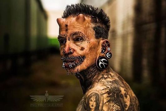 독일 출신 롤프 부흐홀츠(61)는 2010년 ‘세계에서 가장 많은 피어싱을 한 사람’으로 기네스북에 올랐다. 그의 몸에는 피어싱만 있는 게 아니다. 안구를 포함해 전신에 문신을 새겼고 이마 위쪽에는 뿔 2개를 이식했다.
