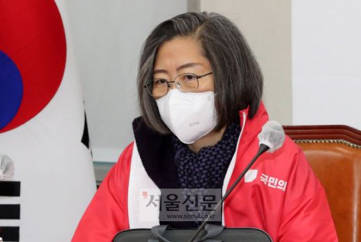 이수정 국민의힘 공동선거대책위원장이 13일 서울 여의도 국회에서 열린 ‘국민의힘 중앙선거대책위원회 회의’에서 김종인 국민의힘 총괄선거대책위원장의 발언을 경청하고 있다.2021.12.13 김명국선임기자 daunso@seoul.co.kr |