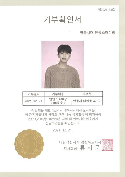 [OSEN=최나영 기자] 가수 임영웅의 안동 지역 팬들이 대한적십자사 경북지사에 연탄 1,280장(100만원 상당)과 희망나눔성금 200만 원을 기부, 뜻깊은 선행을 이어갔다.