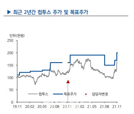 메타버스·NFT 사업을 공격적으로 확장 중인 점도 긍정적으로 평가했다. 개발 중인 자체 메타버스 플랫폼 Com2verse는 트레일러 영상 공개, 내년 하반기 오피스월드 상용화, 이후 엔터테인먼트 월드로의 확장 과정을 거칠 것으로 예상했다.