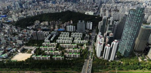 개포우성 4차아파트(사진 앞쪽 중층 아파트 단지) 및 인근 사진 [서울특별시 제공] |