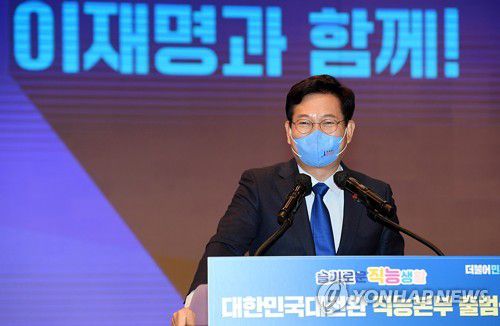 (서울=연합뉴스) 강병철 정수연 기자 = 더불어민주당 송영길 대표는 23일 이재명 대선 후보의 과거 음주운전 이력과 관련, "음주운전은 물론 잘못했으나 음주운전도 제보자 이야기를 들으러 급히 가다가 그랬다고 한다"고 말했다.