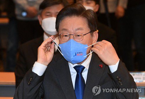 마스크 바꿔쓰는 이재명 대선후보 |