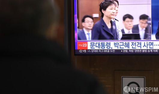 [서울=뉴스핌] 김민지 인턴기자 = 국정농단 사건으로 수감 중인 박근혜 전 대통령의 특별사면이 발표된 24일 오전 서울역 대합실에 관련 뉴스가 나오고 있다. 2021.12.24 kimkim@newspim.com |