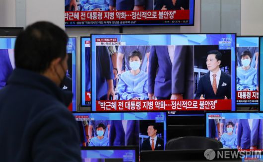 [서울=뉴스핌] 정일구 기자 = 24일 오전 서울 용산구 용산전자상가에서 시민들이 박근혜 전 대통령에 대한 특별사면 관련 뉴스를 시청하고 있다. 정부는 이날 2022년 새해를 맞아 오는 31일자로 국정농단 사건으로 수감 중인 박 전 대통령과 한명숙 전 국무총리를 비롯해 일반 형사범 등 3094명을 특별사면·감형·복권 조치했다고 밝혔다. 2021.12.24 mironj19@newspim.com |
