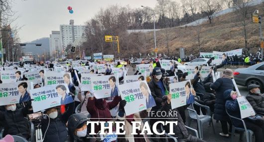 우리공화당은 24일 오후 5시 박 전 대통령이 입원해 있는 서울 강남구 삼성서울병원 앞에서 특별사면 환영 집회를 열었다.