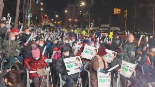 박근혜 전 대통령의 특별사면 소식이 전해진 24일 오후. 친박계 정당인 우리공화당이 박 전 대통령이 입원 치료 중인 삼성서울병원 앞에서 석방 기념 집회를 벌였다. 정부가 이날 오전 2022년 특별사면·복권 대상에 박 전 대통령을 포함했다는 소식이 전해지자 친박 성향 지지자들이 총결집한 것이다.