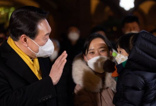 [서울=뉴시스] 정병혁 기자 = 윤석열 국민의힘 대선후보가 24일 오후 서울 중구 명동성당에서 열린 성탄절 미사에 참석하기에 앞서 시민들과 기념촬영을 하고 있다. (공동취재사진) 2021.12.25. |