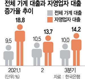 1인당 대출액은 3억5,000만원으로 비자영업자의 4배 수준이고, 대출 증가 속도가 전체 가계대출(10.0%)보다도 빨랐다.