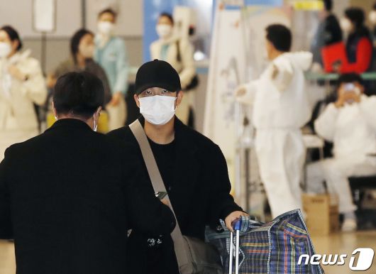 방탄소년단(BTS) 진이 6일 새벽 LA콘서트를 성황리에 마치고 인천국제공항을 통해 입국하고 있다. 2021.12.6/뉴스1 © News1 권현진 기자 |