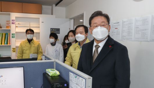 이재명 더불어민주당 대선후보가 성탄절인 지난 25일 오후 서울 강남구보건소 재택치료 모니터링 센터를 둘러보고 있다. [사진 = 연합뉴스] |