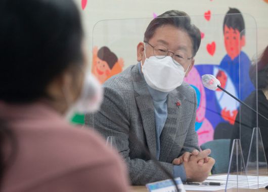 이재명 더불어민주당 대선 후보가 26일 오후 서울 여의도 더불어민주당 중앙당사에서 열린 ‘공공산후조리원을 부탁해’ 국민반상회에서 참석자 발언을 듣고 있다. (사진= 국회사진기자단) |