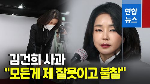 (서울=연합뉴스) 국민의힘 윤석열 대선 후보의 부인 김건희 씨가 26일 자신의 허위이력 논란에 대해 대국민 사과를 했습니다.