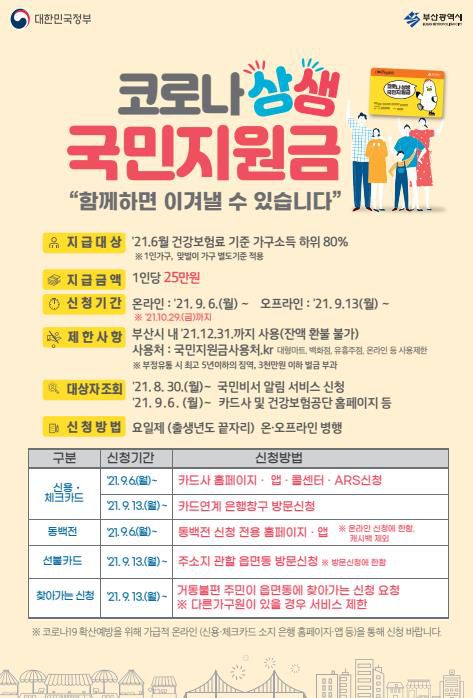 부산시가 지난 9월 6일부터 지급된 ‘코로나 상생 국민지원금’의 사용기한이 오는 12월 31일로 마감된다며 사용을 재차 권했다. 사용하지 않은 금액은 소멸한다.