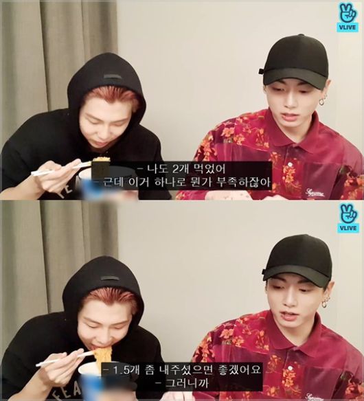 이에 누리꾼들은 "맞아 비빔면 1개는 너무 적고 2개는 더부룩해", "방탄소년단 맛잘알(맛을 잘 아는 사람)이네", "라이브 방송 보고 비빔면 사 왔음. 방탄 효과 대박", "얼른 눈치 챙기길. 비빔면 1.5배 가보자고" 등 RM의 소신 발언에 공감하며 비빔면 사이즈 업을 함께 염원했습니다.