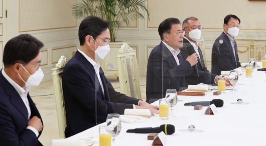 이날 행사에는 이재용 삼성전자 부회장과 정의선 현대자동차 그룹 회장, 최태원 SK주식회사 대표이사 회장, 구광모LG 대표이사 회장, 최정우 포스코 그룹 회장, 구현모 KT 대표이사 등 대기업 총수들이 참석했다.