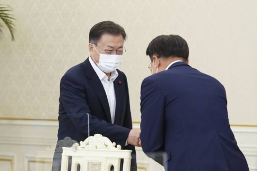 지난 14일 문 대통령이 호주를 방문해 핵심광물 공급에 앞장서 준 것에 대해서도 언급했다. 최정우 회장은 "최근 호주에서의 공급망 MOU를 통해 배터리 양극재에 필요한 리튬, 니켈, 흑연 등의 공급망이 안정화 됐다"며 감사의 뜻을 전했다.