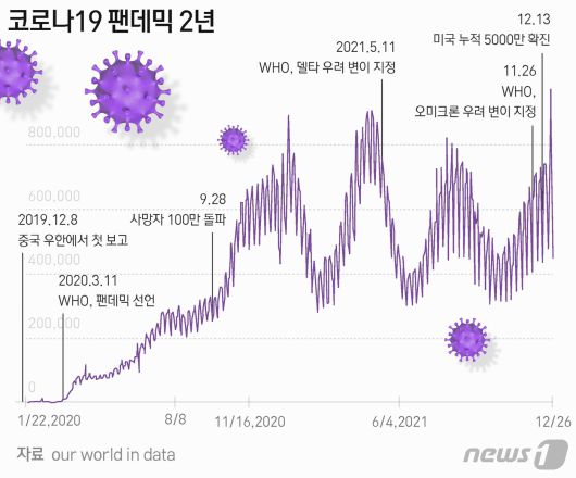 (서울=뉴스1) 최서윤 기자 = 오는 31일은 신종 코로나바이러스 감염증(코로나19)이 세상에 보고된 지 2년을 맞는다. 3개월 뒤 세계적 대유행병으로 선언된 코로나19 팬데믹 사태는 이제 3년 차로 접어들게 된다.