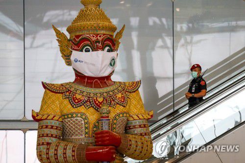 방콕 수완나품 공항 출국장 대형 동상. 2021.12.27 |