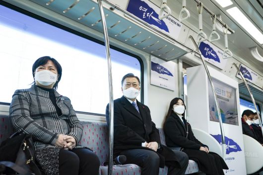 문 대통령은 “저는 동남권 주민이고, 또 곧 또 다시 동남권으로 돌아와서 생활할 사람이기 때문에 정말 감회가 깊다”며 “수도권이 서울 인천 경기 이 3개 권역을 다 하나의 생활권으로 하는 단일경제권으로 커질 수 있었던 것은 결국 그 광역 사이에 거미줄처럼 연결된 지하철 전철 덕분이라고 말할 수 있다”고 했다.
