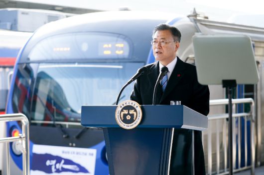 文대통령 동남권 4개 철도건설사업 개통현장 방문해 시민들과 함께 광역철도 시승