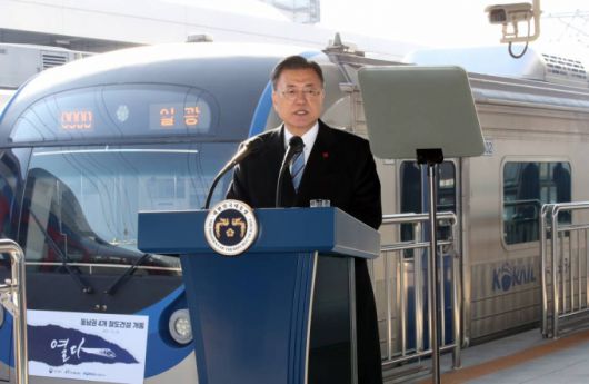 한편 문 대통령은 올해 도입된 저탄소 친환경 고속열차인 'KTX-이음' 열차가 처음으로 운행된 중앙선에서 올해 첫 일정과 마지막 일정을 모두 수행했다. 문 대통령은 지난 1월4일 올해 첫 현장 일정으로 '중앙선 원주~제천 구간'에서 KTX-이음열차 시승을 했고 이날 올해 마지막 일정으로 '중앙선 청량리~원주~제천~도담~영천~신경주'과 연결되는 동남권 철도(동대구~영천~신경주~태화강~일광) 개통 현장을 방문했다.
