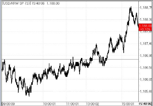 28일 서울외국환중개에 따르면 환율은 전 거래일 종가(1186.80원) 대비 1.20원 오른 1188.00원에 마감했다. 이날 환율은 전일 종가 대비 0.30원 하락한 1186.50원에 약보합권으로 하락 출발 한 뒤 장중 한 때 1185.40원까지 하락하기도 했다. 다만 등락 폭은 1원 이내로 크지 않은 보합권 움직임을 보였다. 그러다 오후 2시 이후 상승 전환하더니 장 마감 직전 오름세를 소폭 확대한 뒤 마감했다.