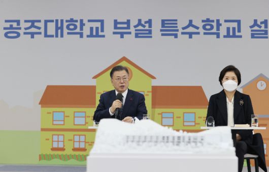 문 대통령은 "드디어 우리나라 최초의 국립대학 부설 특수학교가 오늘 공주대학교에서 첫걸음을 시작한다"며 "국립대학이 가지고 있는 전문성이 있는 교육자원과 연계하여 재능 있는 장애 학생들에게 특화된 교육과정을 운영할 수 있는 첫 사례가 될 것"이라고 말했다.