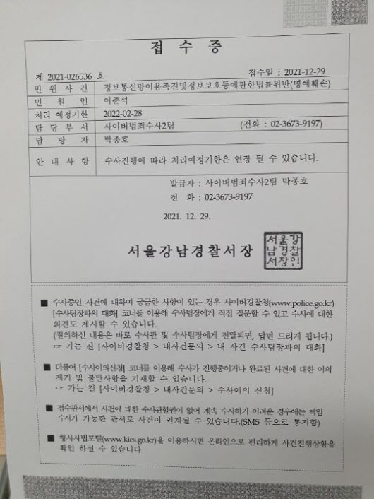 이 대표 측은 이날 서울 강남경찰서 사이버범죄수사2팀에 강용석 변호사와 김세의 전 기자를 ‘정보통신망 이용촉진 및 정보보호 등에 관한 법률(명예훼손)’ 혐의로 고소장을 접수했다고 밝혔다.
