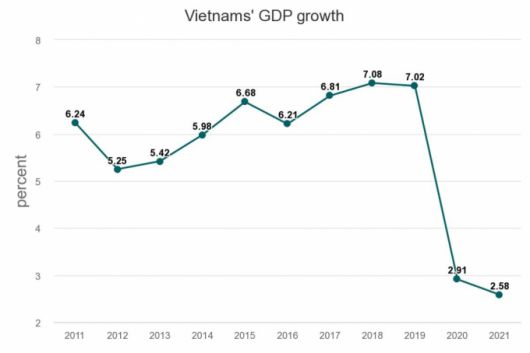 베트남은 지난 2015년부터 6~7%대 성장률을 기록하며 아시아 신흥국 중 가장 눈부신 경제성장을 기록한 국가로 주목받았다. 하지만 팬데믹으로 인한 셧다운이 수출 의존국인 베트남 경제를 강타했고, 이는 사상 최악의 경제성장으로 이어졌다.