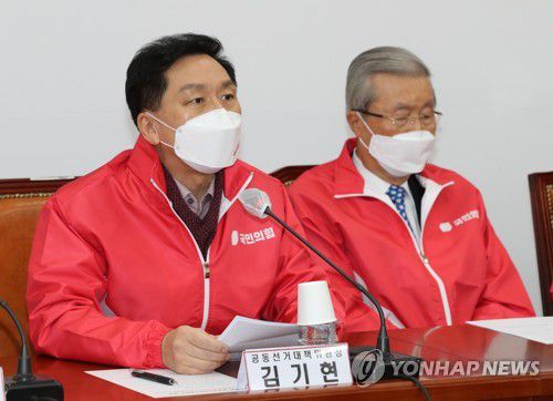 발언하는 김기현 공동선대위원장 |